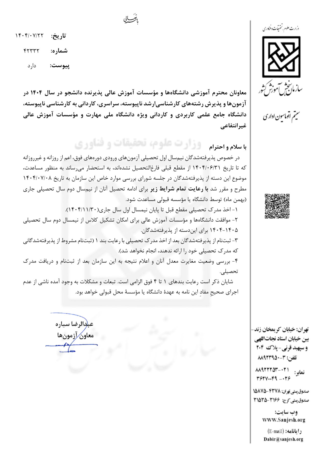 قابل توجه پذیرفته شدگان سال ۱۴۰۴ ۲۷ مهر ۱۴۰۴ | ۱۴:۵۲ کد : ۳۵۷۲ اطــلاعیه ها ارسال به دیگران نام شما ایمیل شما ایمیل دریافتکننده ارسال انصراف تعداد بازدید:۱۶۴