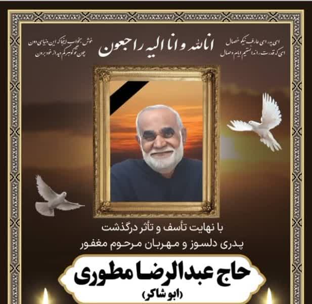 با نهایت تأسف و تأثر درگذشت همکار گرانقدر و بازنشسته عزیزمان " مرحوم حاج آقای عبدالرضا مطوری " را از طرف خانواده بزرگ دانشگاهیان دانشگاه علوم و فنون دریایی خرمشهر به خانواده داغدار آن مرحوم تسلیت عرض می نمائیم.